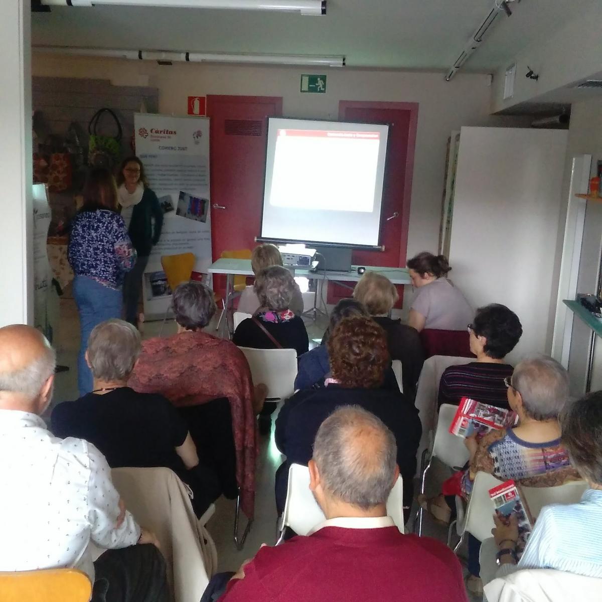 Ambas realizaron una espléndida explicación del motivo de la implicación de Cáritas en el comercio justo y cómo surgió esta alternativa. Explicaron que esta apuesta comenzó por la necesidad de mejorar la cooperación internacional que se hacía sobre las Cáritas más pobres del mundo. En un principio, esta ayuda, según explicaron las ponentes, consistía en ofrecer asistencia tras desastres naturales o tragedias humanitarias, pero se dieron cuenta que tenía que ver todo desde la perspectiva más global y no era solamente colaborar sino ayudar a salir de la pobreza a estos hermanos que vivían en la penuria. De esta manera ellos por sí mismos podrían mejorar sus vidas, explicaron Ana Sancho y María José Nieto.