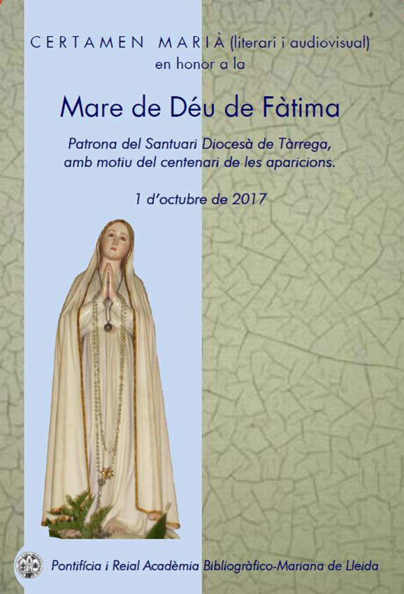 Ya está publicado el libro Certamen Mariano en honor a la Virgen de Fátima, del Santuario Diocesano de Fátima, con motivo del centenario de las apariciones, celebrado el pasado 1 de octubre de 2017 en la Academia Mariana de Lleida.