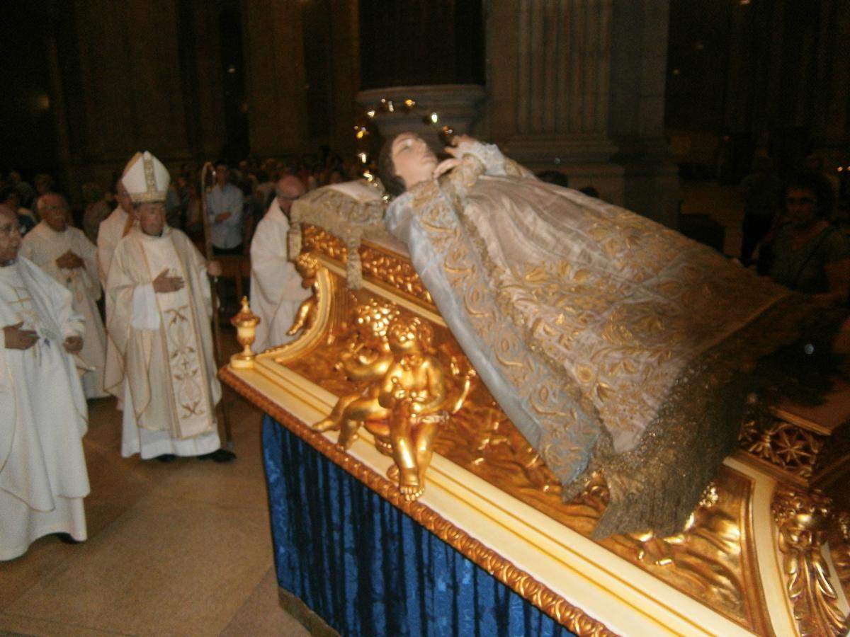 exponiendo en su catafalco y a la pública veneración de los fieles durante toda la jornada, la imagen de la Virgen de la Litera o "de la cama".