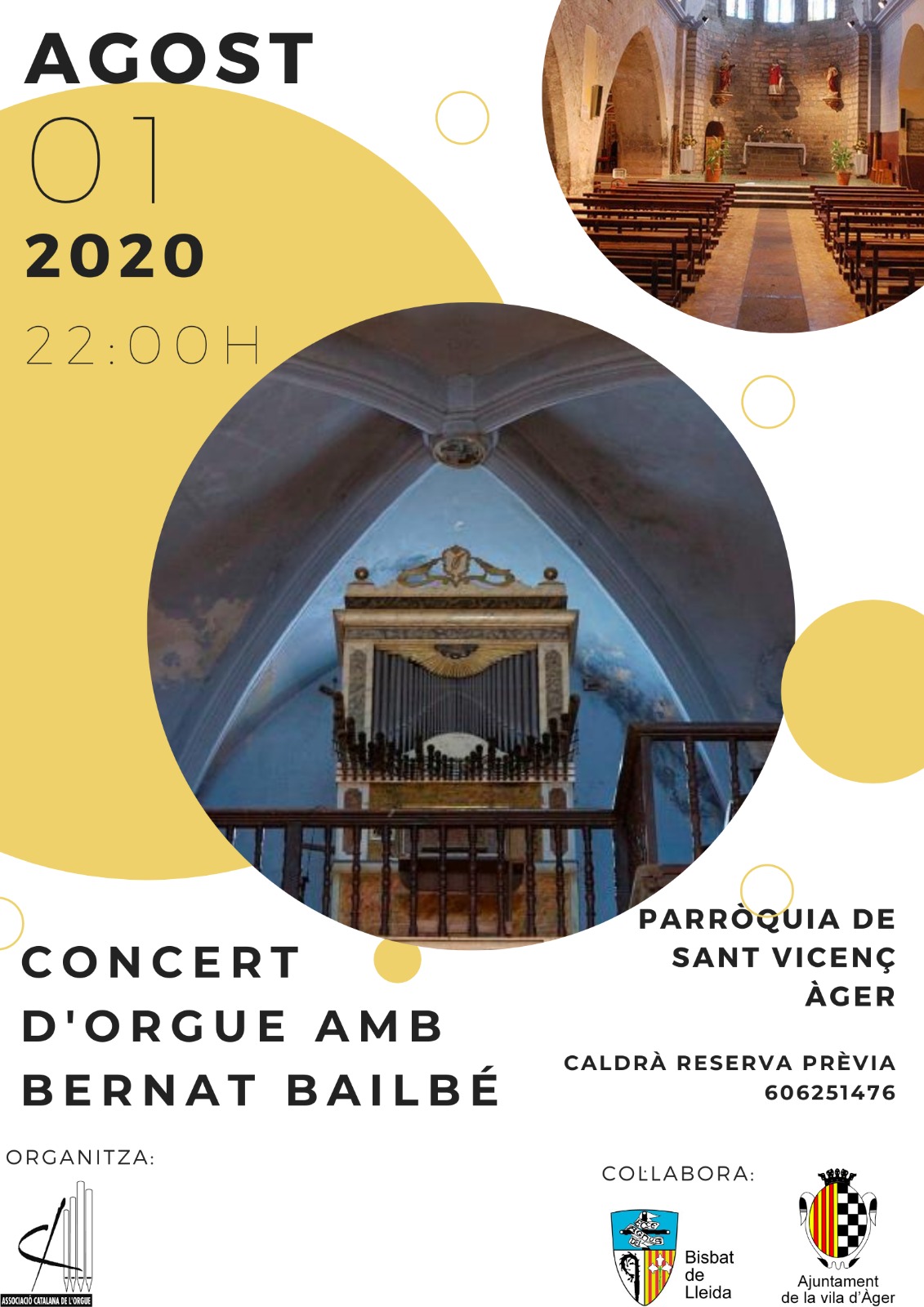 La parròquia de Sant Vicenç d'Àger acollirà el dissabte 1 d'agost un concert d'orgue a càrrec de Bernat Bailbé. El concert tindrà lloc a les 22.00 hores.