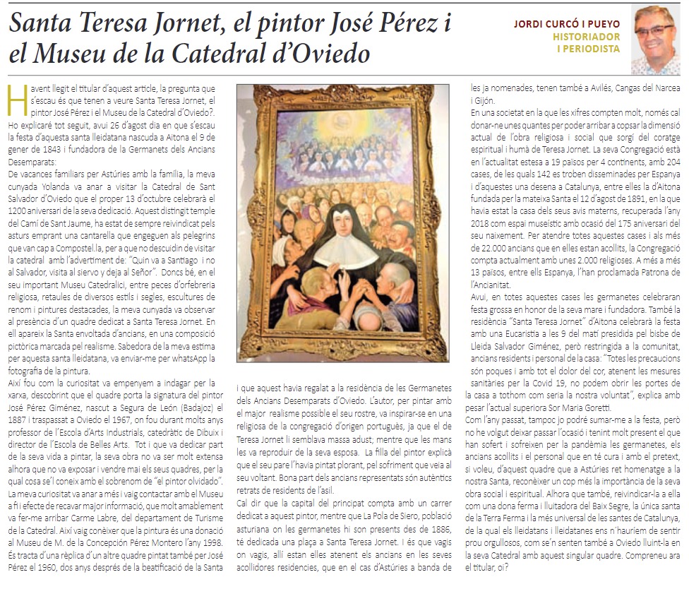 Al document adjunt teniu un article de Jordi Curcó sobre Santa Teresa Jornet i el pintor José Pérez.