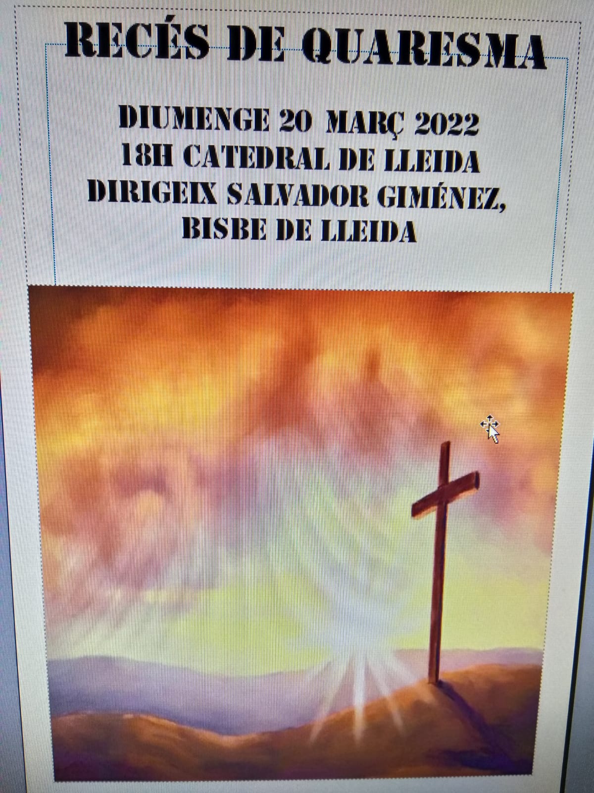 La Catedral de Lleida acollirà el diumenge 20 de març el recés de Quaresma. Serà a les 18 hores i estarà dirigit pel Bisbe de Lleida, Salvador Giménez.