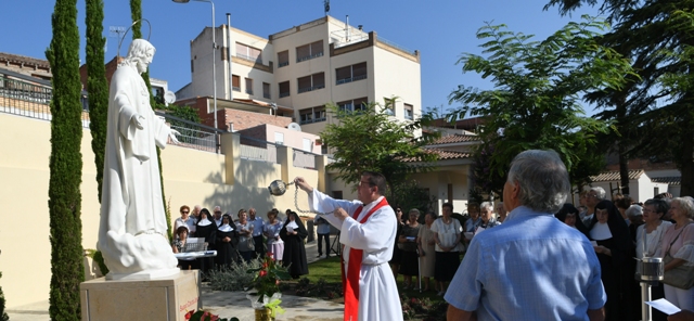 Benedicció d’una escultura del Sagrat Cor de Jesús al jardí de la Casa Asil d'Aitona