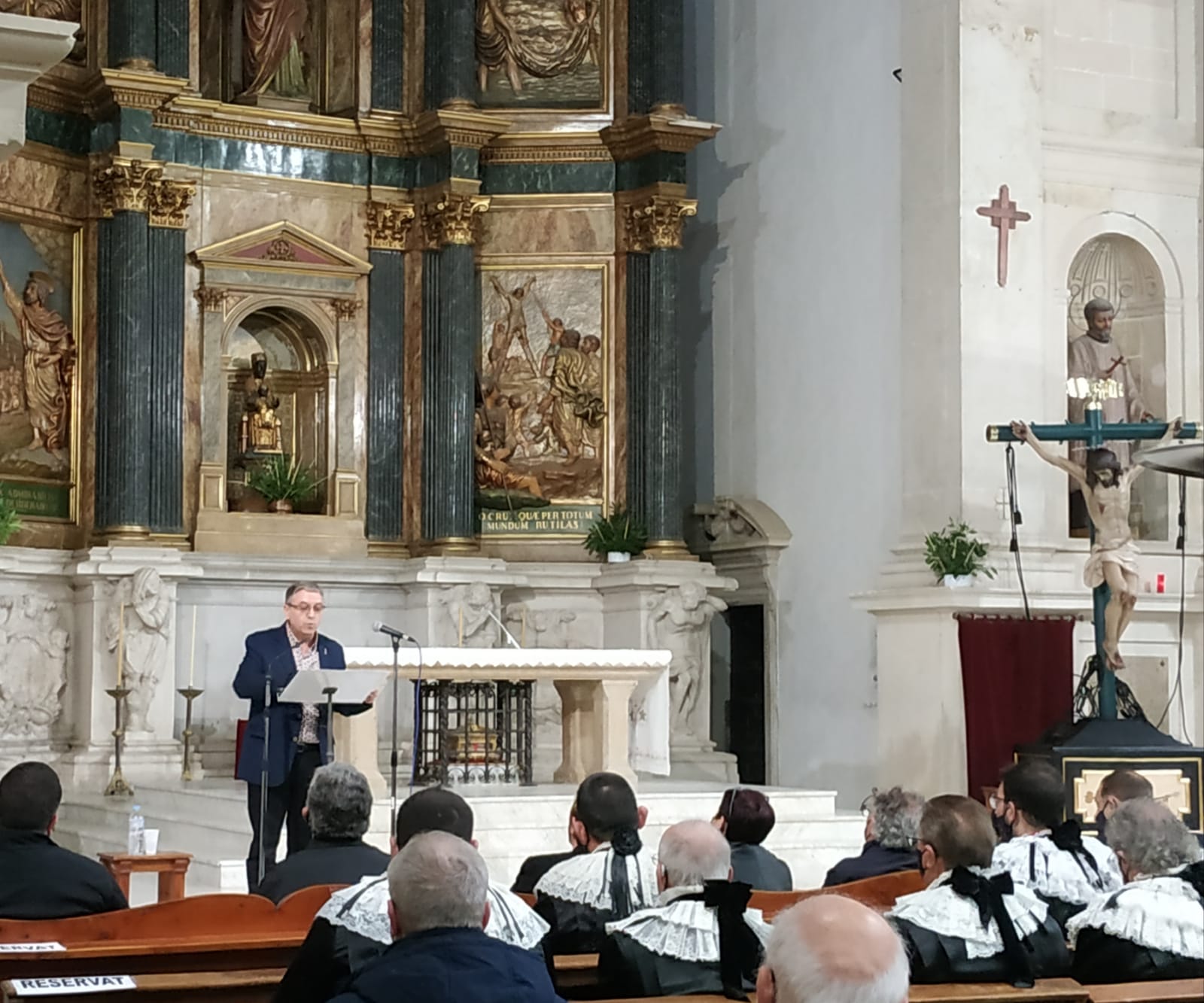 Jordi Curcó agermana en el Pregó de Setmana Santa les Soledats de la Sang de Lleida i de la Selva del Camp