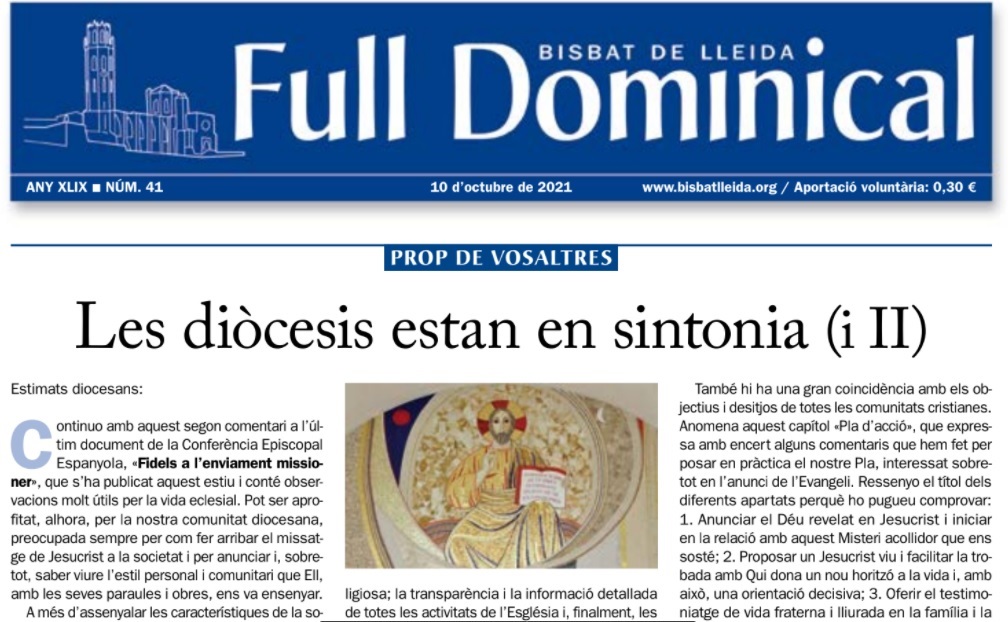 Carta del Bisbe Salvador convocant als fidels a l'apertura de la fase diocesana del Sínode
