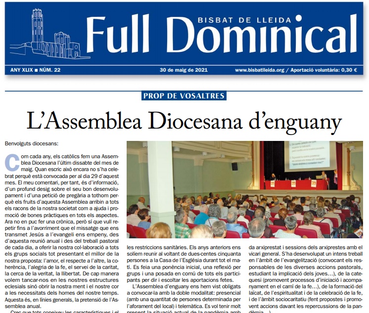 L'Assemblea Diocesana estableix el pla d'actuacions pel curs amb una aposta per la pastoral dels joves i els espais de pregària