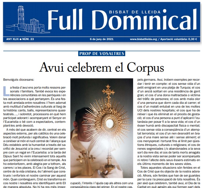 La Catedral de Lleida acollirà la celebració del Corpus Christi el diumenge 6 de juny