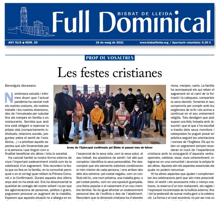 El Bisbe Salvador convida als fidels a l'Assemblea Diocesana del dissabte 29 de maig