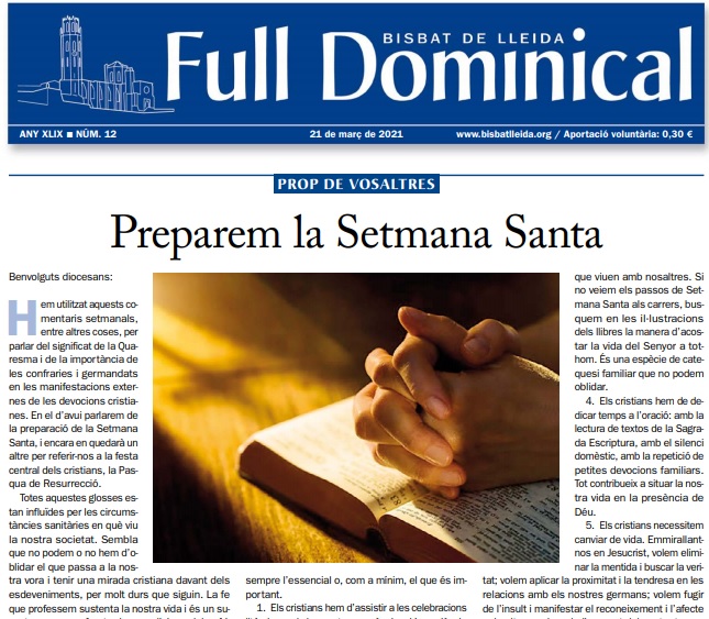 Vígilia de quaresma telemàtica des de la parròquia d'Àger
