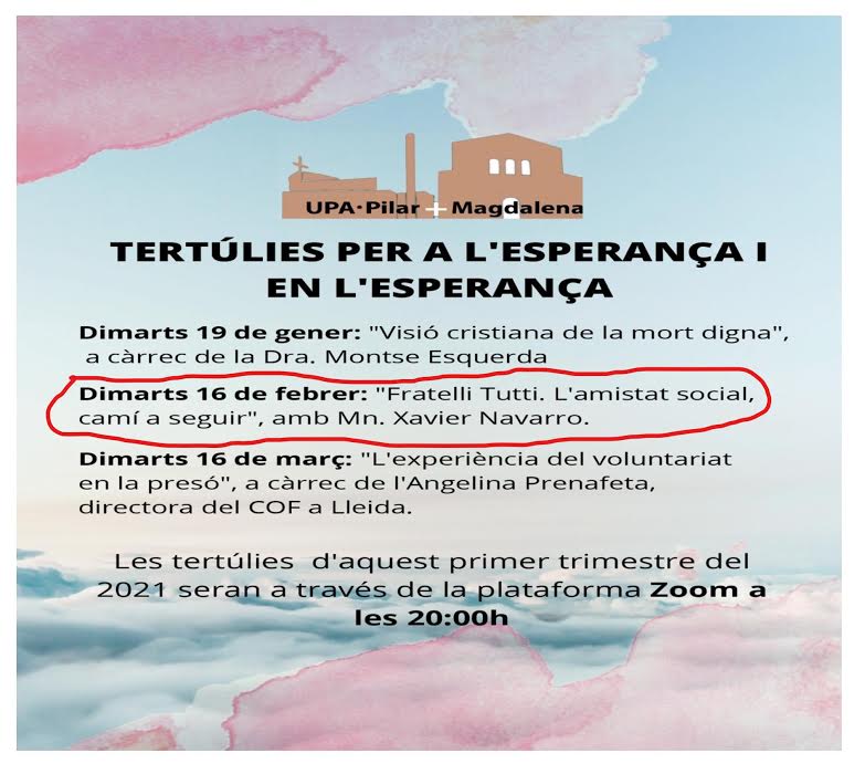 Tertúlia virtual sobre la 'Fratelli Tutti' a la UPA Pilar-Magdalena