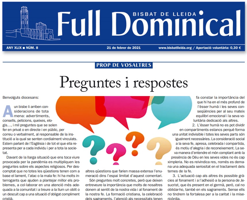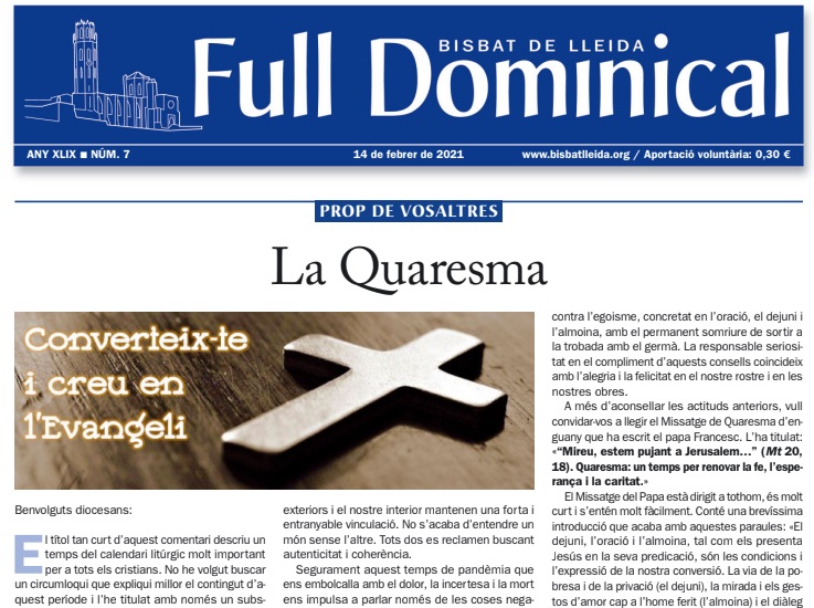 "El gran repte del cristià en temps de pandèmia és descobrir la presència amorosa de Déu"