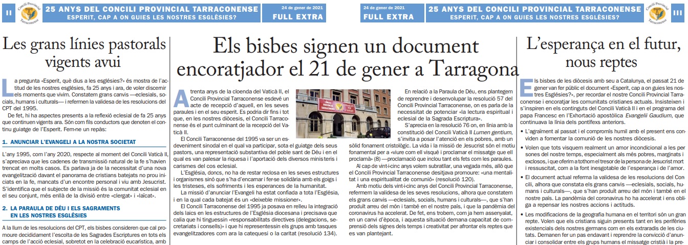 Full especial amb motiu del 25 anys del Concili Provincial Tarraconense
