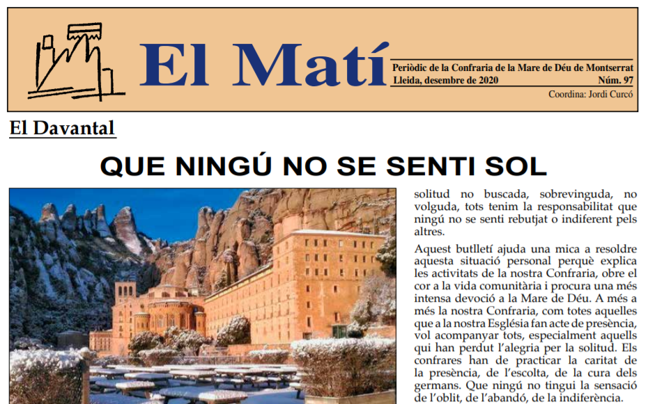 Nova edició del Butlletí 'El Matí' de la Confraria de la Mare de Déu de Montserrat