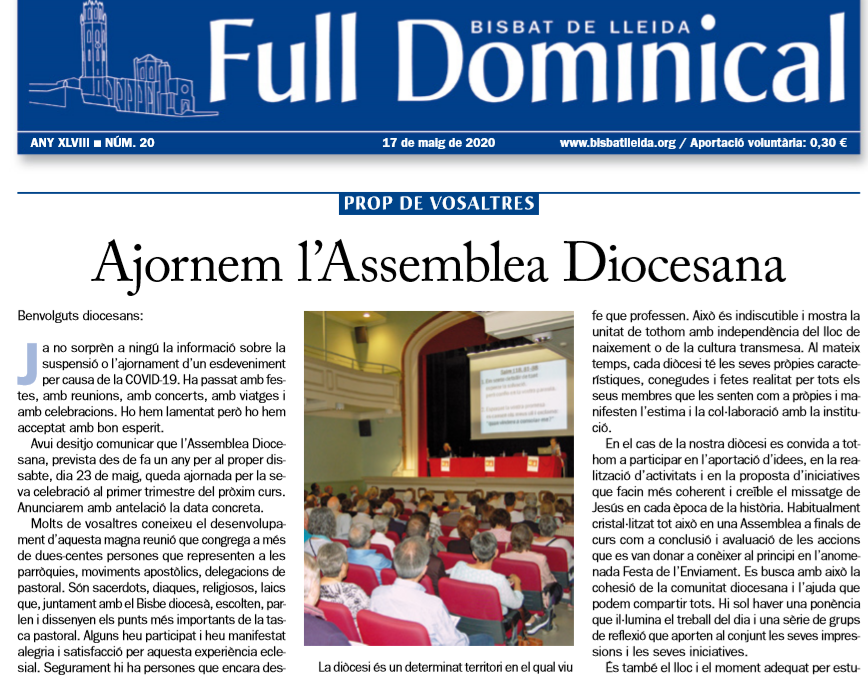 Mesures de protecció davant la reanudació de les Misses a la diòcesi de Lleida