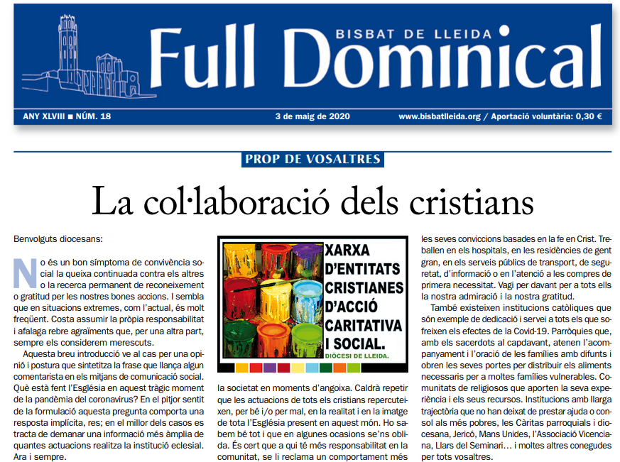 Carta del Bisbe Salvador sobre l'evolució de la malaltia de la Covid-19 (30-4-2020)