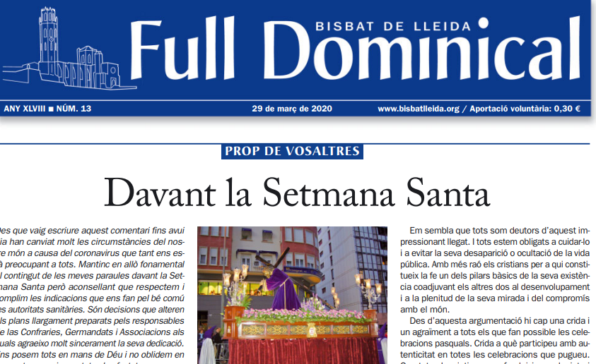 La diòcesi de Lleida continua la seva tasca pastoral malgrat el confinament
