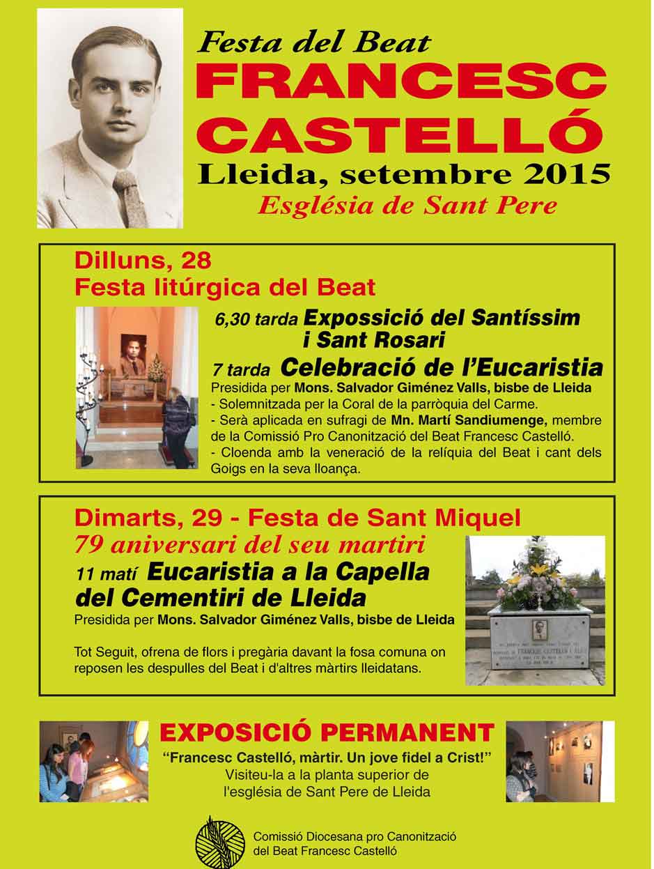 El bisbe de Lleida presidirà els actes en honor al beat Castelló