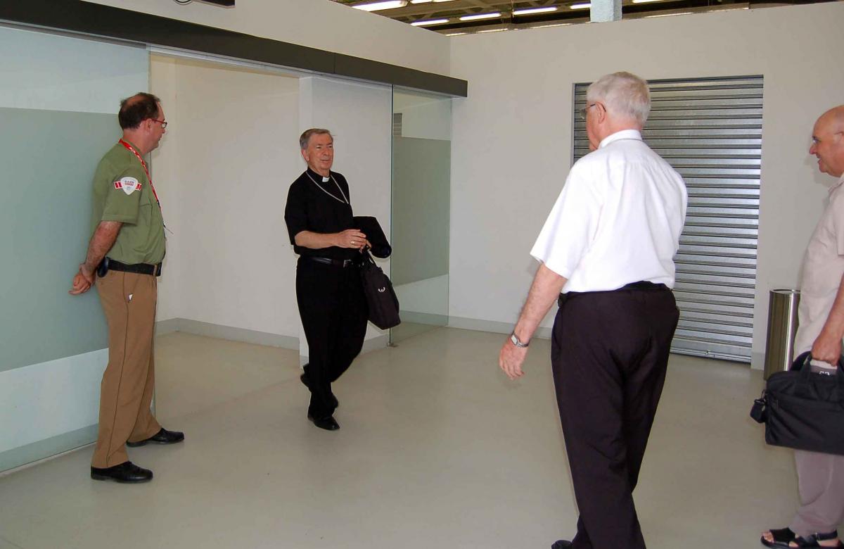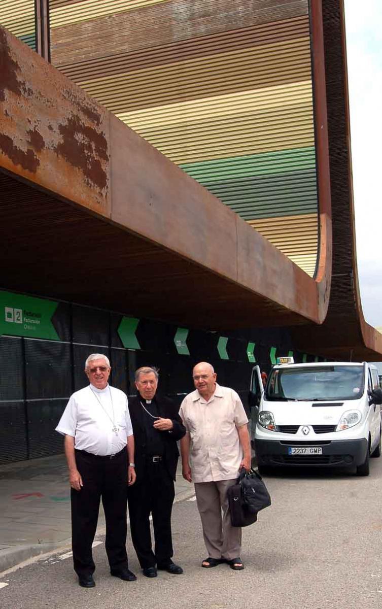 a l’aeroport d’Alguaire pel bisbe emèrit Mons. Joan Piris i per l’administrador diocesà, Mn. Ramon Prat.