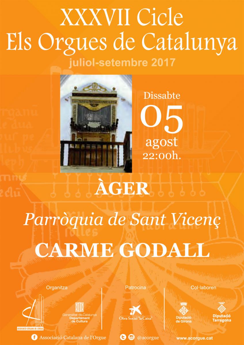 La parròquia de Sant Vicenç d’Àger acollirà el proper dissabte 5 d’agost a les 22 hores un concert interpretat per Carme Godall en el marc del XXXVII Cicle Els Orgues de Catalunya.