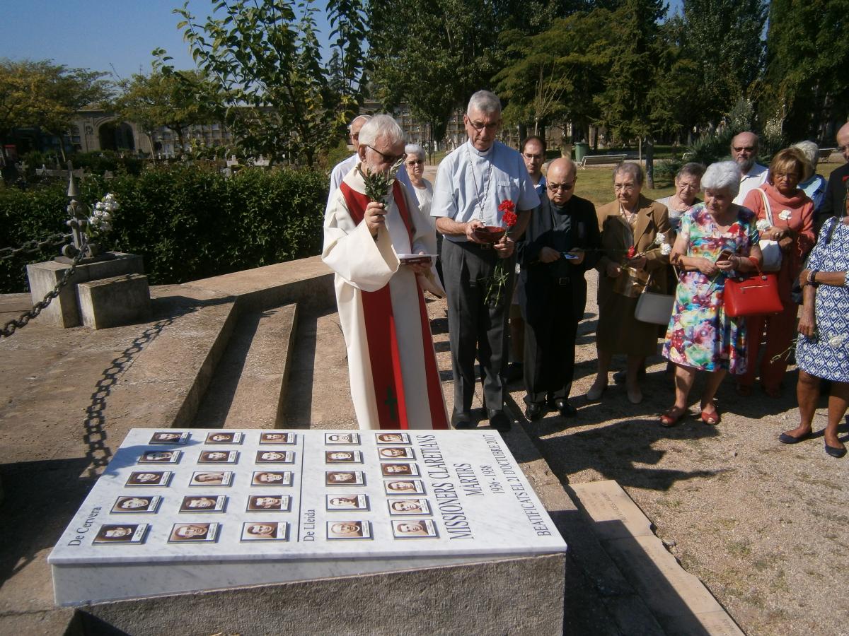 Finalment, el claretià Josep Vilarrubias beneí la placa commemorativa, amb la fotografia de cadascun dels màrtirs, que al poc va quedar coberta de clavells blancs i vermells, símbol de puresa i de martiri, dipositats per tots els participants en l’homenatge a aquests religiosos màrtirs, a poques setmanes del primer aniversari de la seva beatificació. A la placa es pot llegir aquesta senzilla llegenda: “Missioners Claretians Màrtirs (1936 -1938) Beatificats el 21 d’octubre 2017.