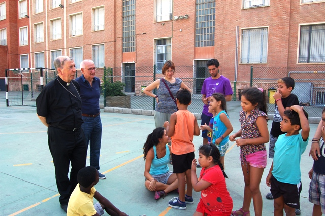 El bisbe Salvador va visitar el passat divendres 28 de juliol els infants que gaudeixen del projecte “Vacances per Créixer” a l’Episcopal i va poder veure el seu dia a dia. Un dels grups estava al menjador fent una activitat amb fruita i l’altre, fent jocs al pati.