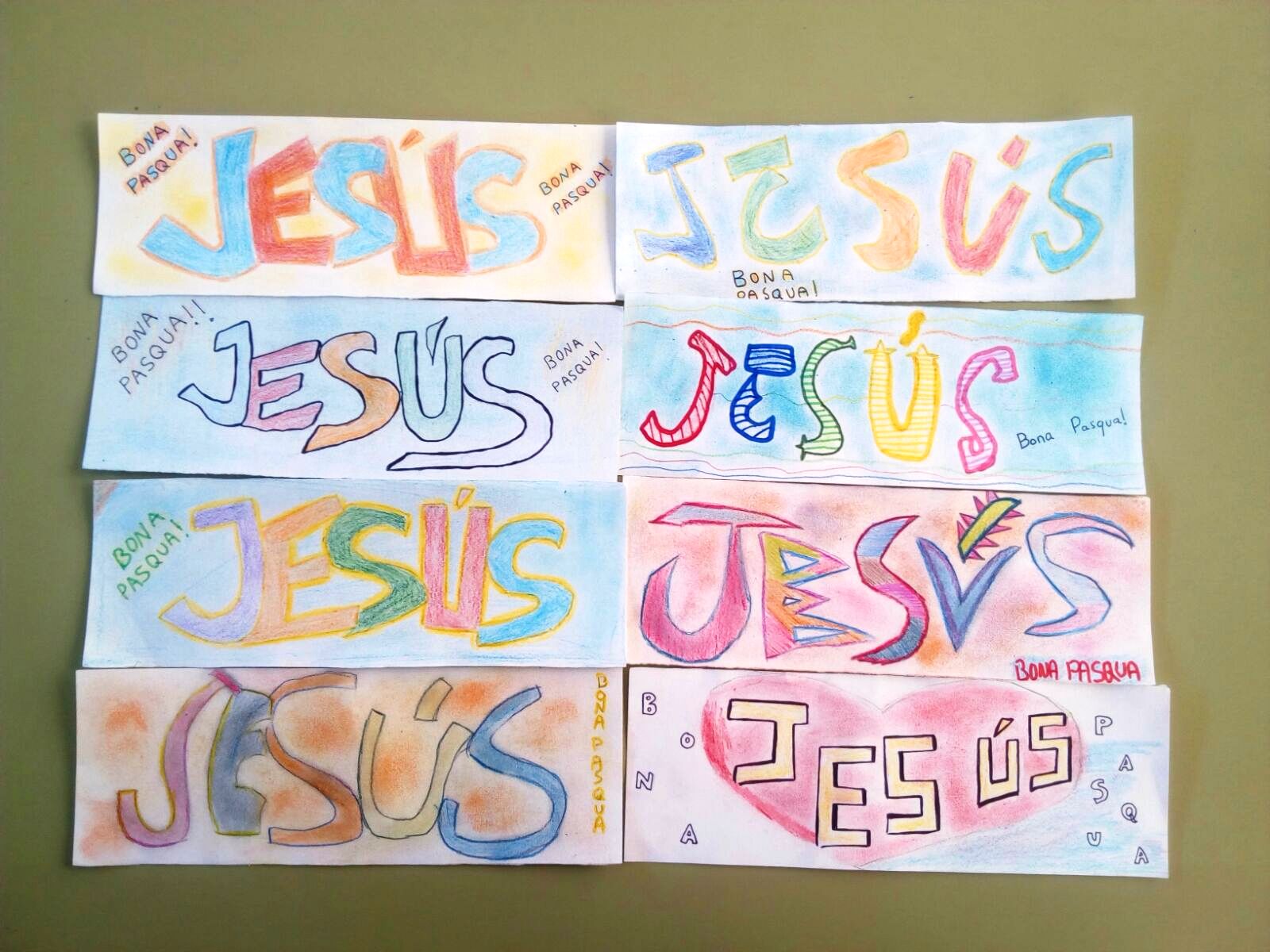 Els nens i les nenes d’alguns pobles de l’arxiprestat del Baix Urgell-Garrigues van entregar als feligresos de les misses de Diumenge de Pasqua uns punts de llibre amb el nom de Jesús en el marc del concurs “Art sense Fronteres”.