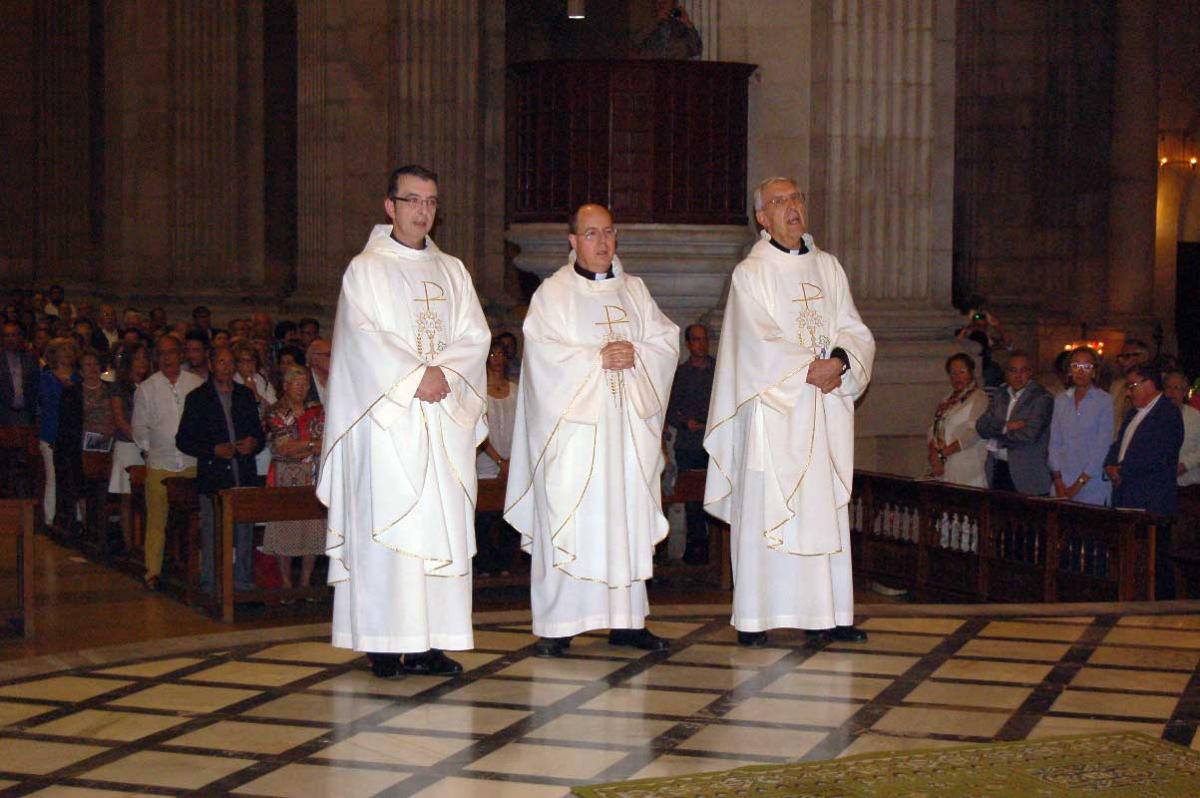Tot seguit s’ha iniciat la cerimònia d’ordenació de Josep Solé Sans,  Joan d’Àvila Busquets Baró i Josep Maria Escorihuela Pujol, com a nous diaques, una  celebració a la qual han assistit centenars de fidels i que ha estat acompanyada pels cants del Petit Cor de la Catedral.