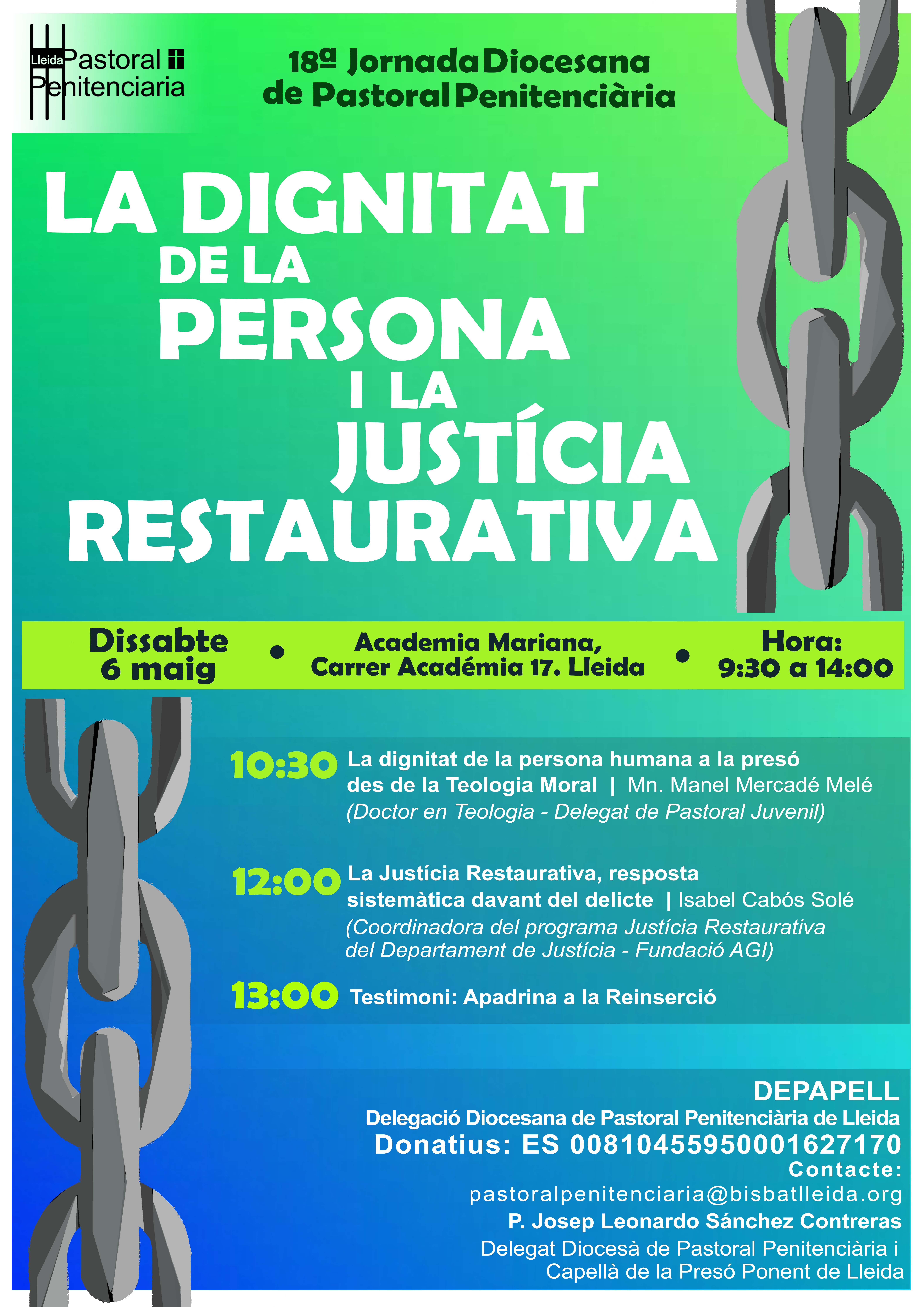 L’Acadèmia Mariana acollirà aquest dissabte 6 de maig al matí la 18ª Jornada Diocesana de Pastoral Penitenciària amb el títol “La dignitat de la persona i la justícia restaurativa”.