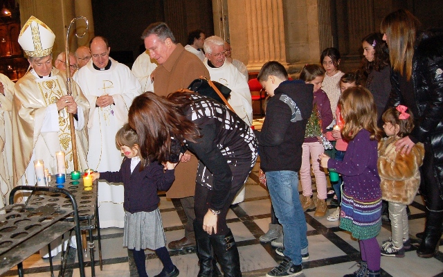 Aquest acte simbòlic pretén ser un una invitació a ser capaços de compartir i repartir la llum per rebre més llum. Prèviament es va celebrar l’eucaristia presidida pel Bisbe Salvador amb l’assistència de gran afluència de fidels. El Petit Cor de la Catedral va acompanyar amb les seves veus la celebració que va acabar amb el cant dels goigs. En acabar, Mons. Salvador Giménez va poder saludar i fer-se una foto de grup amb les Blaus i les seves famílies.