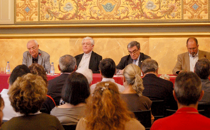 El President de la Fundació Verge Blanca i del Banc dels Aliments de Lleida, Joan Ramon Saura, ha estat l’encarregat de pronunciar el pregó oficial del Corpus 2015 en un acte celebrat al Paranimf de l’Acadèmia Mariana, presidit pel Bisbe de Lleida, Joan Piris, i al qual hi ha assistit l’alcalde, Àngel Ros.