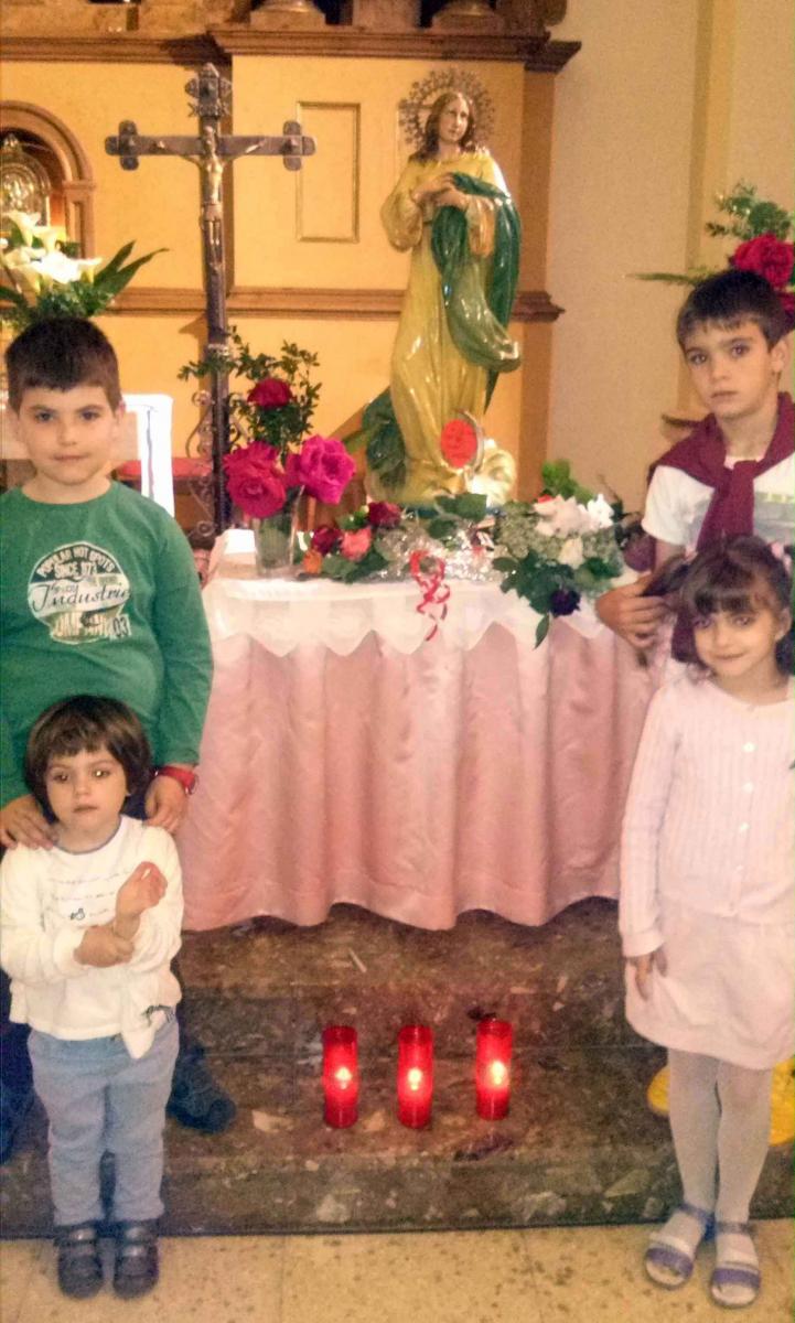 El diumenge 5 de maig, els nens i nenes de les parròquies de Bellaguarda, Bovera, La Granadella, Juncosa i Sarroca de Lleida van participar de la Missa i entorn de Jesús Ressuscitat van oferir als  peus de la Mare de Déu, les flors i el cor que ells mateixos  van fer.  Símbols  de l'amor a Maria, la nostra Mare.