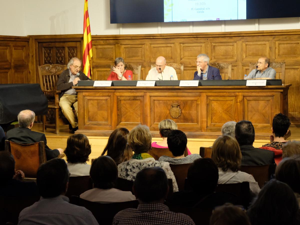 L’acte va concloure amb unes sentidíssimes paraules de la neboda Gina Blanch que ompliren l’Aula Magna de furor, simpatia, amistat, alegria, proximitat amb el difunt homenatjat: Josep Martí. Sempre, ens deia la neboda Gina, el tiet pensava de tres en tres, com les persones de la Santíssima Trinitat. I d’aquesta manera va anar desglossant tres poetes, tres músics, tres pel·lícules. A aquest panegíric a Mossèn Martí Cristòfol va seguir una reflexió pausada i sentida del nostre Sr. Bisbe Salvador, que exposà la seva vida de prevere com una donació total al llarg de la seva existència. Tant a la parròquia de St. Pere, com a les anteriors que va estar: Torres de Segre i el seu estimat poble d’Almenar.