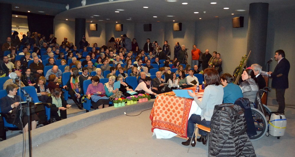 La sala es va omplir de gom a gom amb unes 300 persones, que moltes d’elles van haver de seguir l’acte dempeus o assegudes en els passadissos.