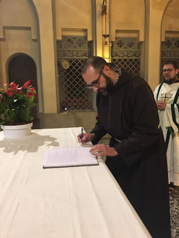 No hi ha dubte que aquest moment més important i significatiu de la celebració, viscut amb forta emoció, fou quan Fra Òscar feu la seva professió: “...de viure durant tres anys sense posseir res i en castedat”, reben tot seguit l’hàbit dels frares menors de Sant Francesc, coneguts com a caputxins, amb el qual fou revestit. Ja com a nou frare fou abraçat pels seus nous germans frares caputxins, com a mostra de bona acollida a la comunitat.