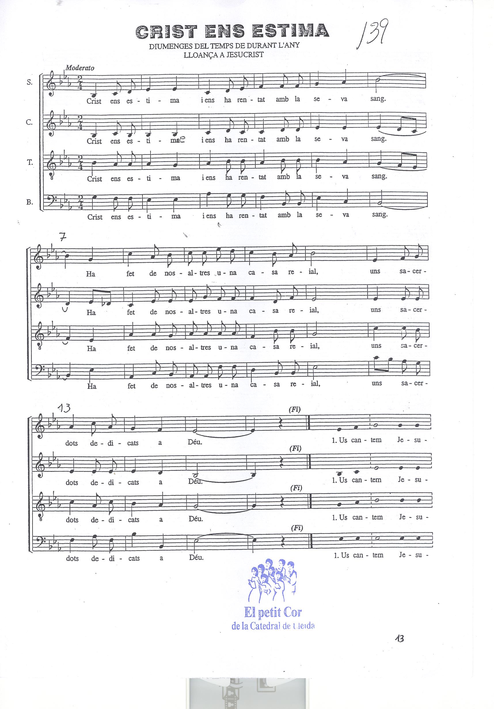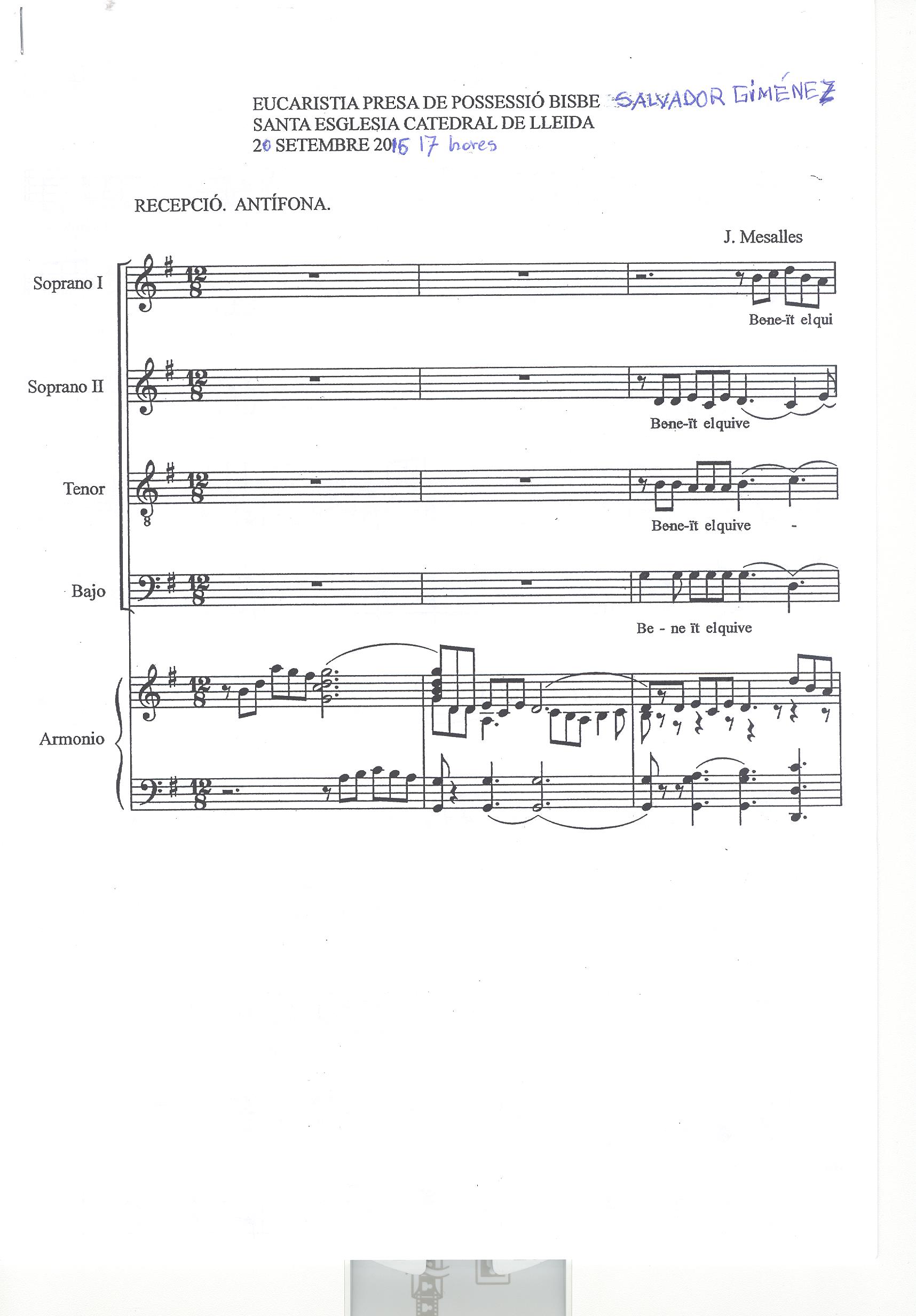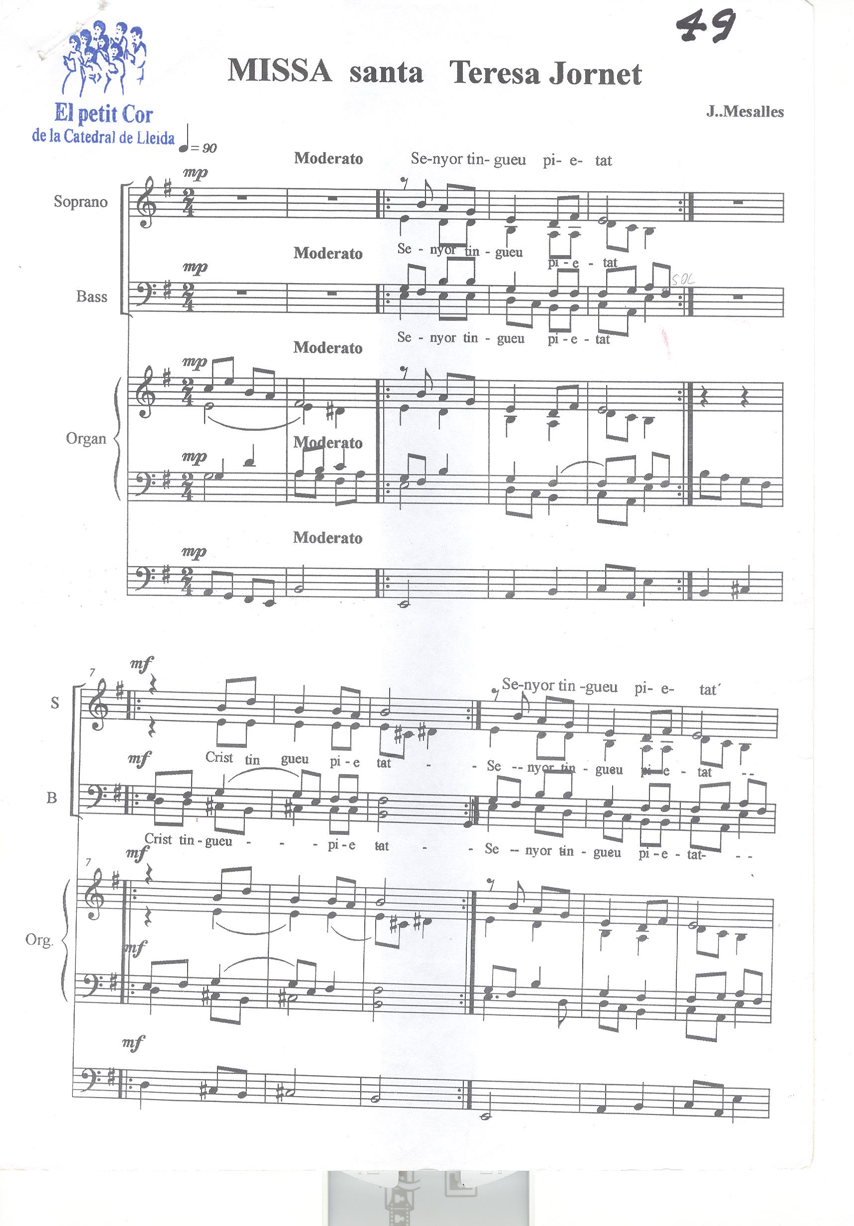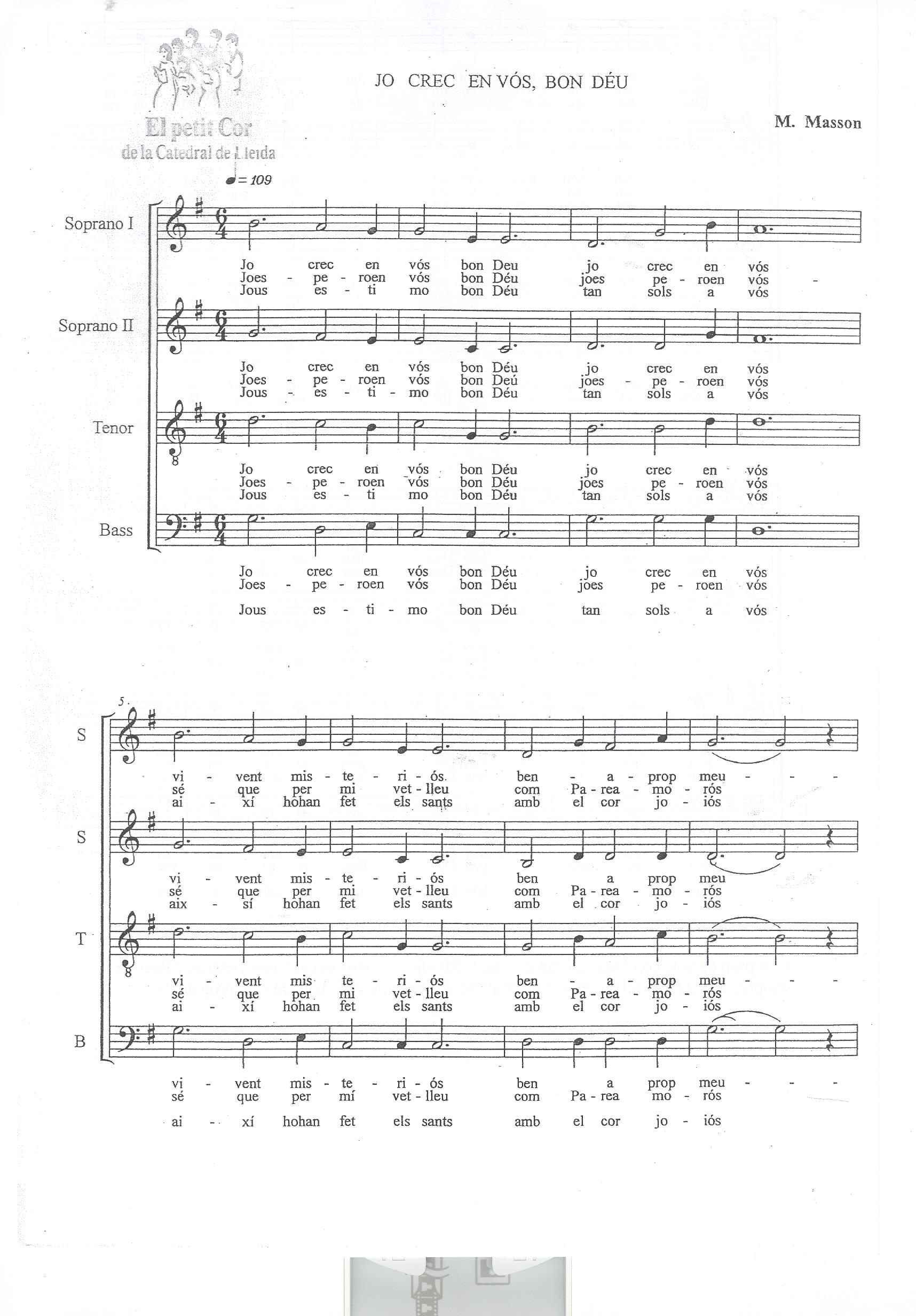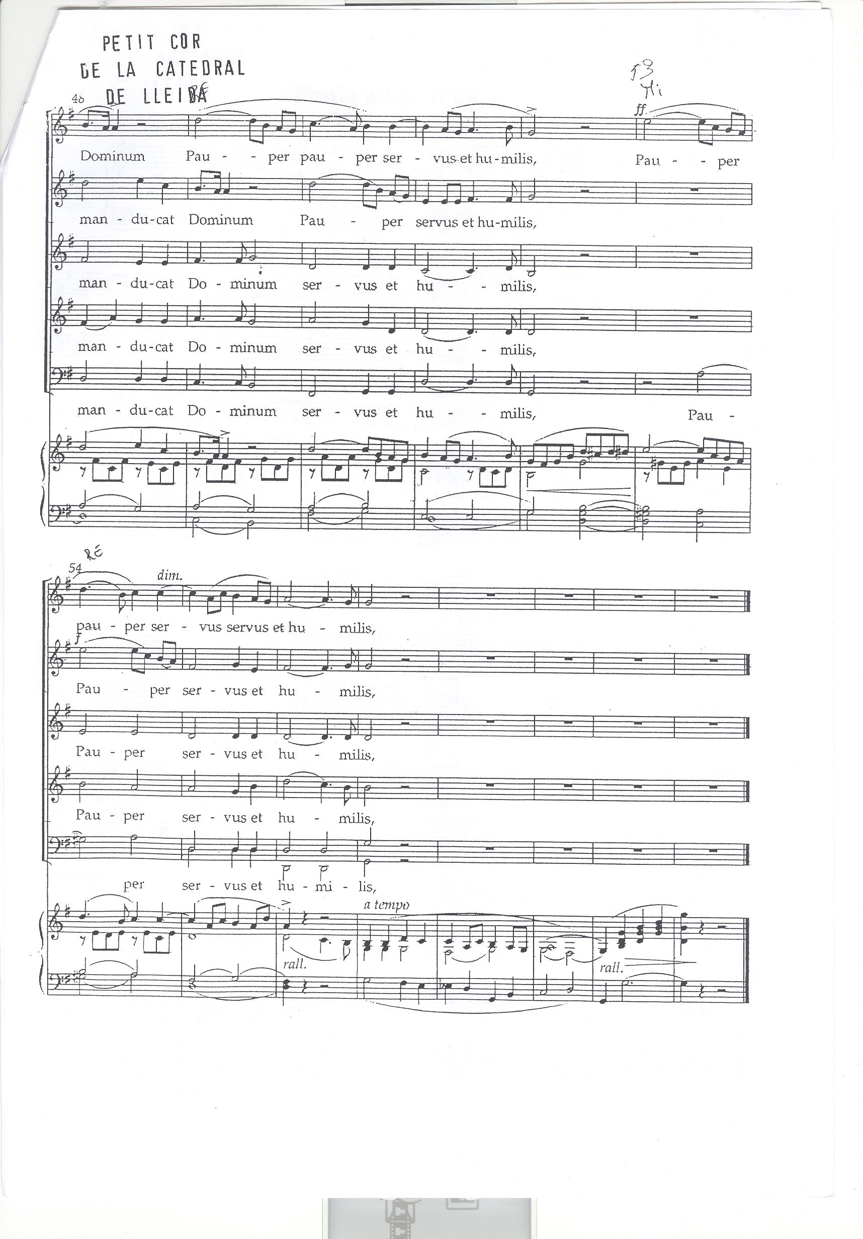 El mestre de capella de la Catedral de Lleida, Mn. Joaquim Mesalles, en nom del Capítol i del Petit Cor de la Catedral, fa una crida a tots aquells cantaires de les Terres de Lleida