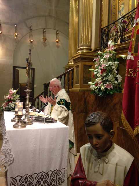 Com és ja tradició, l'Eucaristia fou organitzada per la Confraria de la Mare de Déu de Montserrat. Va presidir la celebració el consiliari de la Confraria, Mn. Xavier Batiste, amb la participació de la Junta de la Confraria, així com un bon nombre de confrares i fidels.