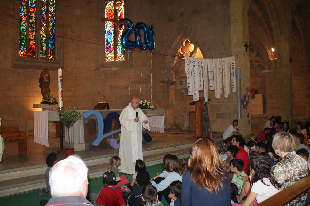 Al migdia l'església del monestir s'ha omplert de gom a gom per celebrar una eucaristia plena de simbologia escaient per l'efemèride. De la celebració, presidida pel Ramon Prat (antic alumne de l'escola) i el jesuïta Toni Riera, en destaca la lectura del testament espiritual de Marcel·lí Champagnat, les pregàries en forma de "les petits virtuts" expressades pel fundador, la universalitat de la presència marista visualitzada a l'ofertori en la proclama del lema "per educar cal estimar" en diferents idiomes, o el reconeixement dels "maristes blaus" que avui realitzen la seva missió enmig del conflicte de Síria.