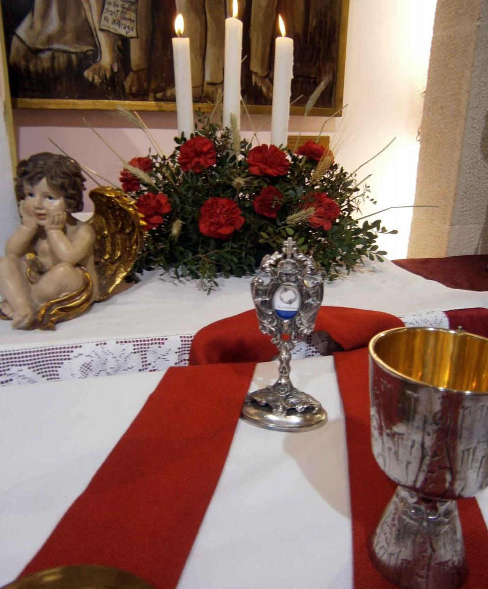 El guarniment, bastit sota el mestratge del membre de la junta directiva de l’Agrupació de Pessebristes Jordi Díaz, lluïa damunt l’altar de la capella diversos motius Eucarístics com un sagrari artístic de fusta, motius florals, la llum dels ciris i l’olor de l’encens. Damunt de l’altar es podia contemplar també un reliquiari que contenia una relíquia del Beat Francesc Castelló, nomenat el passat 11 de març patró dels pessebristes lleidatans.