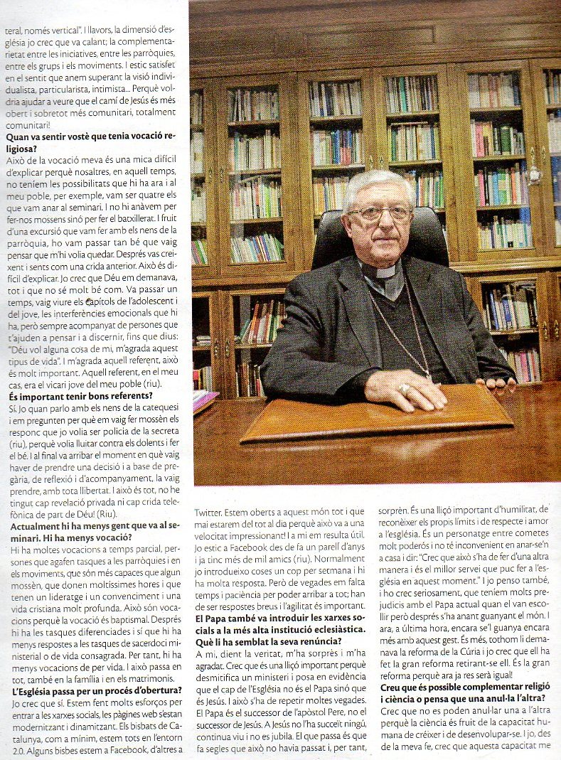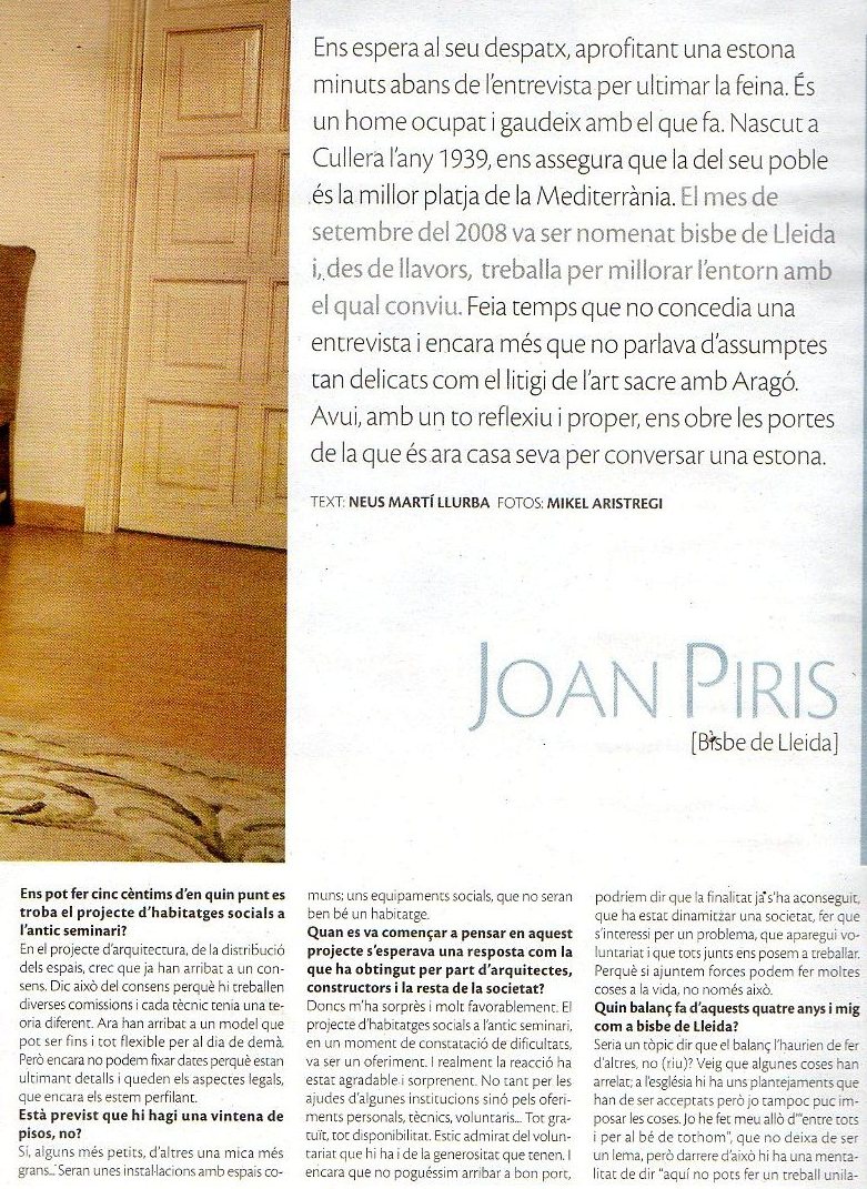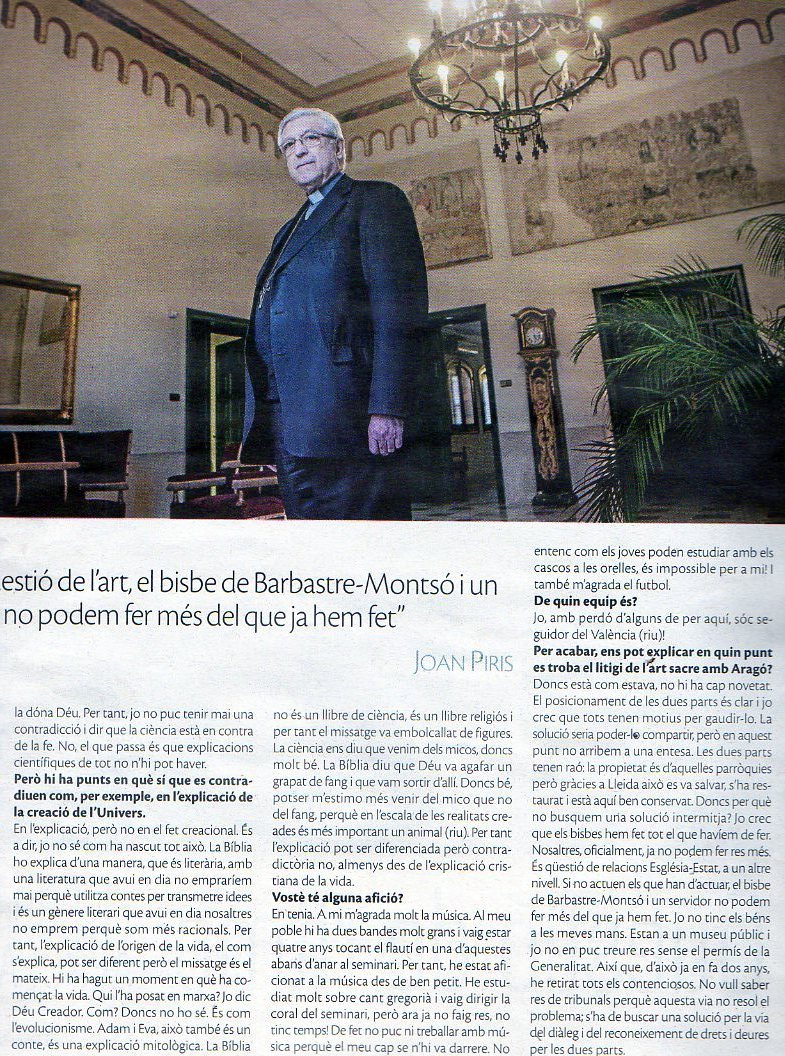 El Bisbe Joan Piris, entrevistat pel suplement dominical del diari Segre.