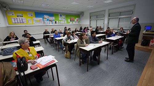 El passat dissabte, 9 d'abril, prop de 400 persones van omplir la sala d'actes del col·legi La Salle Bonanova de Barcelona per participar en la 10a Jornada de Mestres i Professors de Religió de les diòcesis amb seu a Catalunya, que organitza conjuntament la Fundació Escola Cristiana de Catalunya (FECC) i el Secretariat Interdiocesà d'Ensenyament de la Religió a Catalunya (SIERC). Una trentena de professors de religió del bisbat de Lleida van participar en la trobada. Després de la pregària inicial va obrir l'acte el director general d'Afers Religiosos de la Generalitat, Enric Vendrell.
