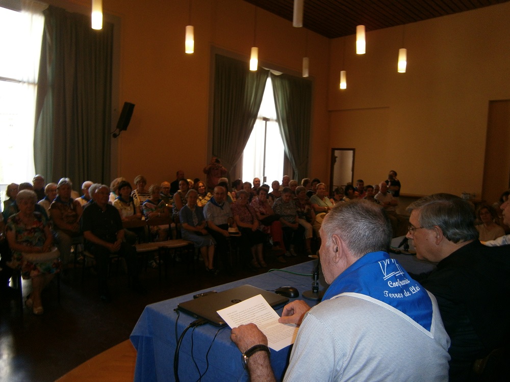 Finalitzada la Missa Conventual i després de cantar el Virolai, tots els romers a més a més dels nens i nenes de la Colònia Qumran amb els seus monitors, es van aplegar en una recepció amb el P. Abat Josep M. Solé i el nostre Sr. Bisbe. El president de la confraria Josep Estruch agraí l'acollida de la comunitat benedictina de Montserrat a la Romeria de Lleida i la companyia del bisbe Salvador. Alhora es referí al triple aniversari que enguany celebra la Confraria, per una banda el 135 aniversari de la proclamació de la Mare de Déu de Montserrat com a Patrona de Catalunya, que feu el papa Lleó XIII un 11 de setembre de l'any 1881. Per altra banda els també 135 anys de la seva fundació, i el 70 aniversari de la seva refundació l'any 1946.