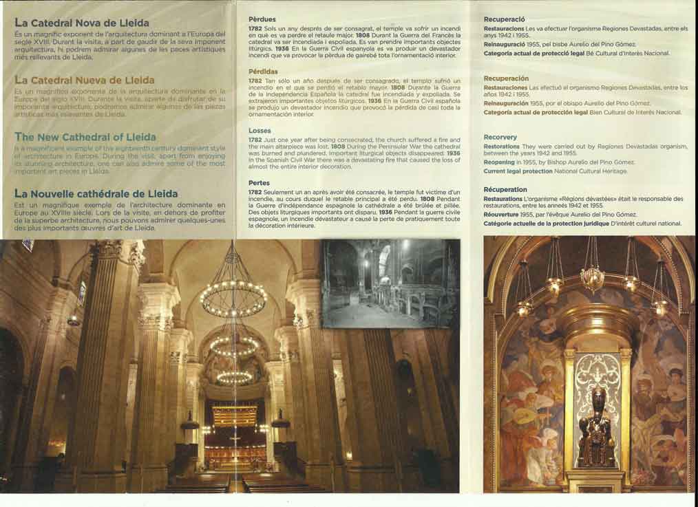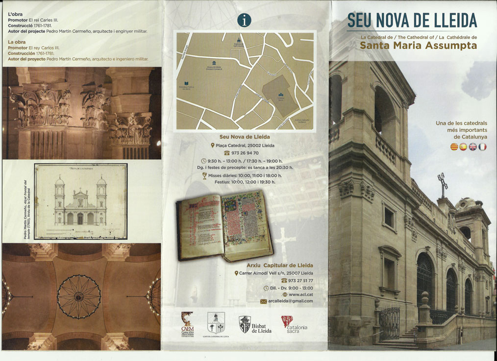 Seu Nova de Lleida. La Catedral de Santa Maria Assumpta és el títol que li han donat a aquest prospecte informatiu d'un temple que, malgrat els seus 233 anys d'existència, ha estat molt castigat pels esdeveniments històrics, arribant a patir fins a tres incendis devastadors.