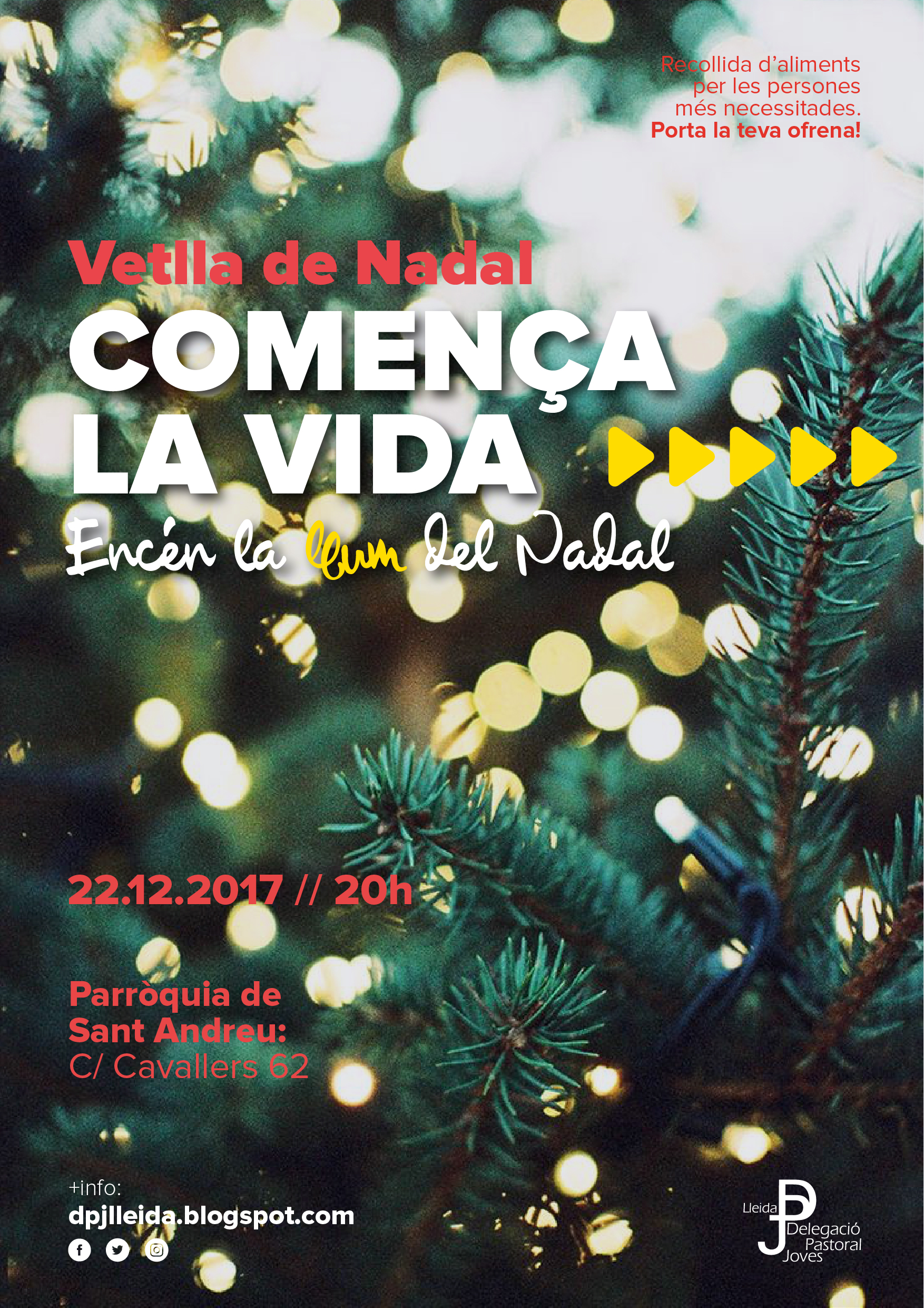 El lema d'aquest any és 'Comença la vida. Encén la llum del Nadal'. Per a més informació podeu accedir a la web de la delegació. dpjlleida.blogspot.com. A més a més, a la Vetlla de Nadal és recolliran aliments per les persones més necessitades.