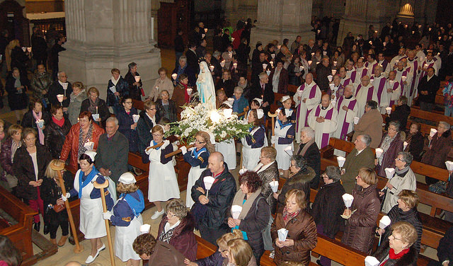 La catedral de Lleida va acollir el passat diumenge 14 de febrer el tradicional rosari de torxes i una eucaristia, actes presidits per primera vegada pel bisbe Salvador i organitzats per l’Hospitalitat de Lourdes.