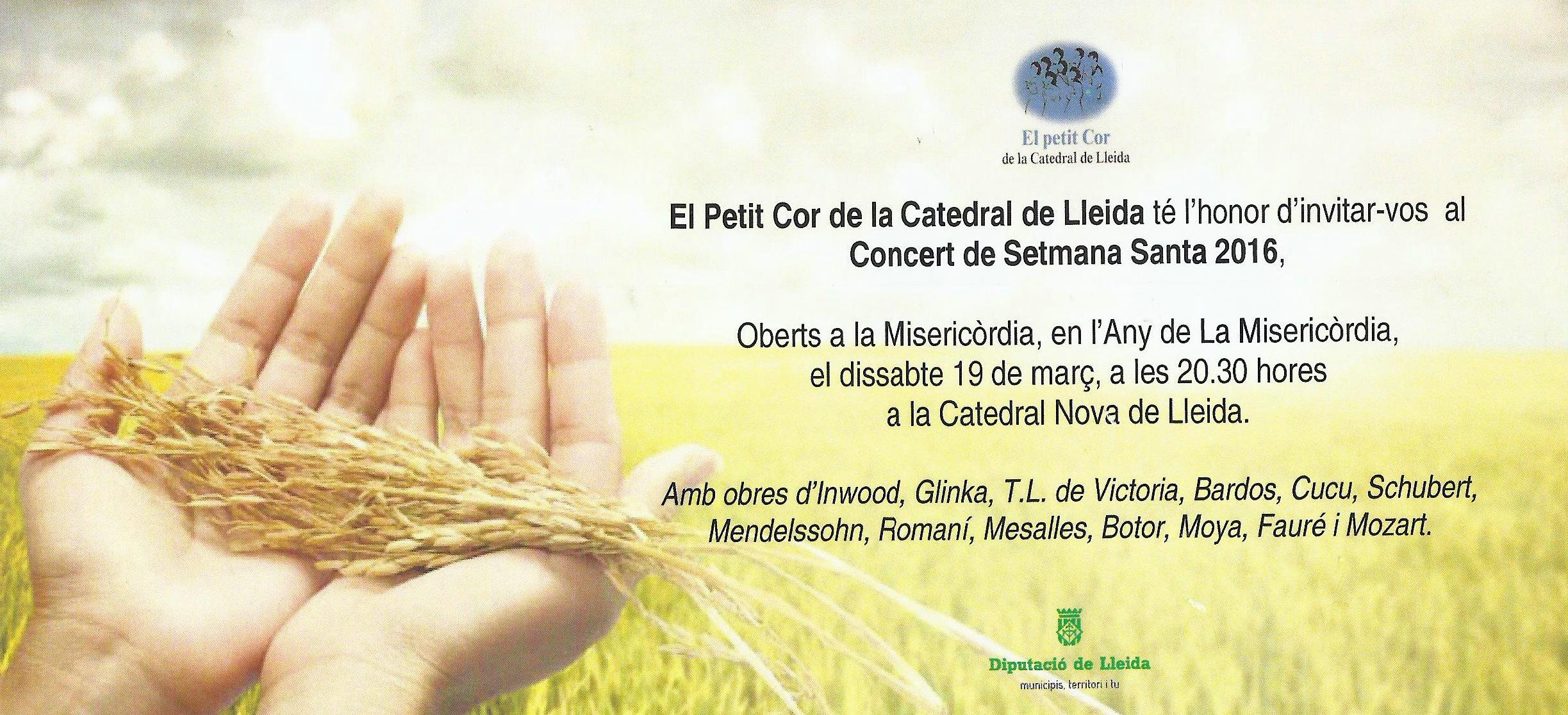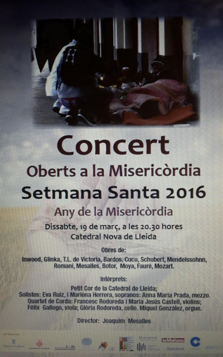 El Petit Cor de la Catedral de Lleida oferirà el dissabte vinent 19 de març el concert 'Oberts a la Misericòrdia' a benefici de la Xarxa d'Entitats Cristianes d'Acció Sociocaritativa del Bisbat de Lleida. El concert tindrà lloc...