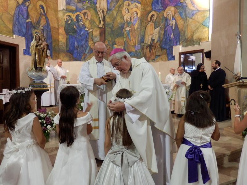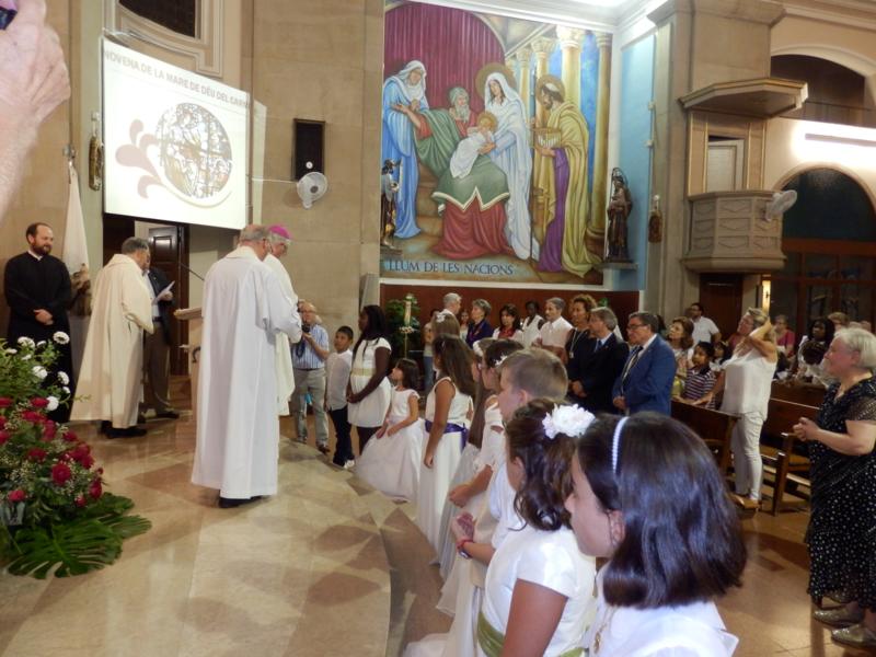 Abans d’entonar els Goigs a la Verge del Carme, el bisbe Joan ha fet la imposició de l’escapulari del Carme als nens i nenes que han fet la Primera Comunió.