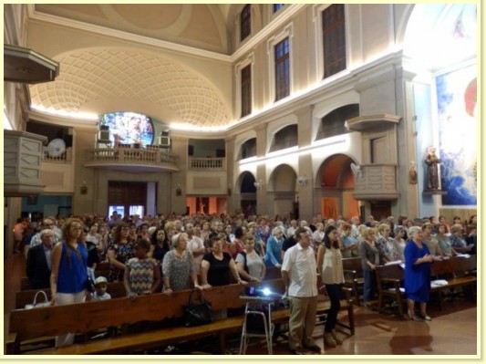 Al vespre, a la Missa solemne va fer la predicació Mossèn Joan Ramon centrada en actituds i pensaments sobre Maria que ens poden ajudar "perquè la nostra vida estigui marcada per una bona relació amb la Mare de Déu". Acabada la Missa es va fer una trobada amistosa al voltant d'una taula d'aliments preparada pels voluntaris de la Fundació Jericó.