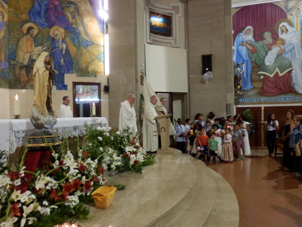 La predicació de Mossèn Joan Ramon es va centrar en el Sant Rosari, una oració molt senzilla i tradicional. És l'oració més bíblica que "té la virtut d'ajuntar l'oració oral, amb l'oració mental: la meditació dels passos més importants de la vida de Jesús i de Maria", va dir Mossèn Ezquerra. Com a resum de tot el que aquests dies havien estat contemplant els fidels, es va repartir un fulletó a cada família. Les pregàries a la Mare de Déu per totes les necessitats de la parròquia i de Jericó van ser de gran intensitat. Durant l'ofertori es va fer la imposició de l'escapulari de la Mare de Déu del Carme als nens i nenes que han fet recentment la Primera Comunió.