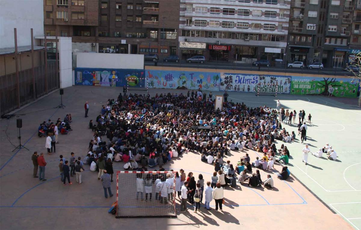 A Lleida, un dels centres que s’han mobilitzat ha estat el Col·legi Maristes Montserrat, on dos alumnes han llegit al mig del pati un manifest a la resta de companys i professors, durant els cinc minuts de silenci que s’ha realitzat a mig matí.
