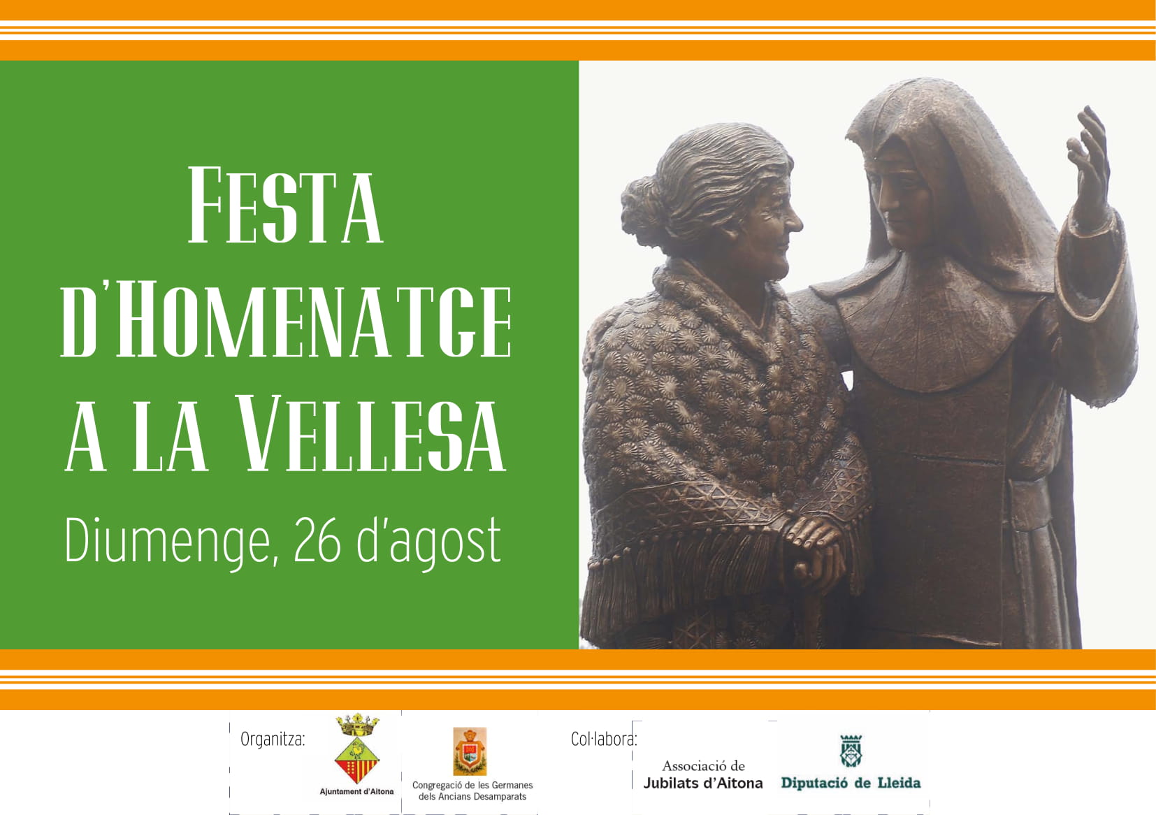 El diumenge 26 d'agost Aitona acollirà la Festa d'homenatge a la Vellesa. Els actes començaran amb una missa solemne presidida pel Bisbe de Lleida, Salvador Giménez, amb l'assistència del Pare Joan Maria Mayol, rector del Santuari del Monestir de Montserrat.